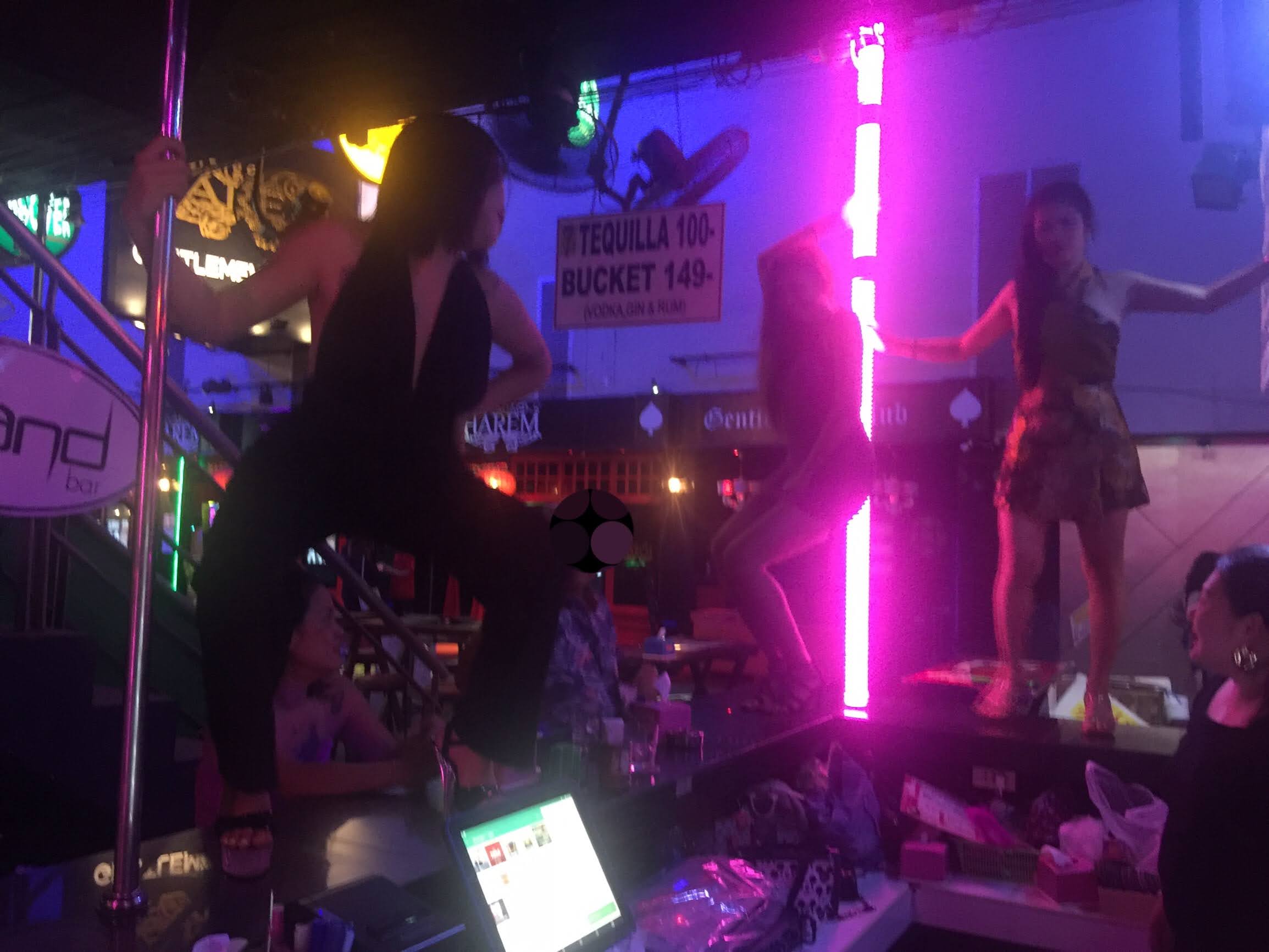 昼も夜も全力で遊んでます。この夜は肉食紳士さんの提案でサンドバーでセクシーポールダンスバトルを開催!
